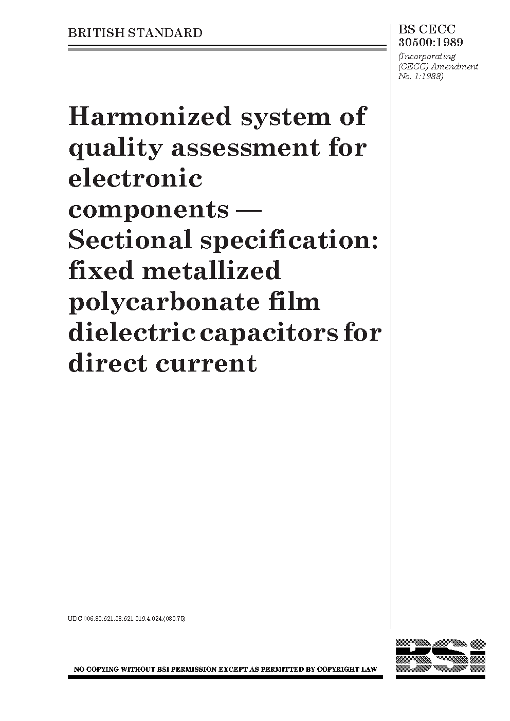 Harmonized system of quality assessment for electronic components. Sectional specification: fixed metallized polycarbonate film dielectric capacitors for direct current