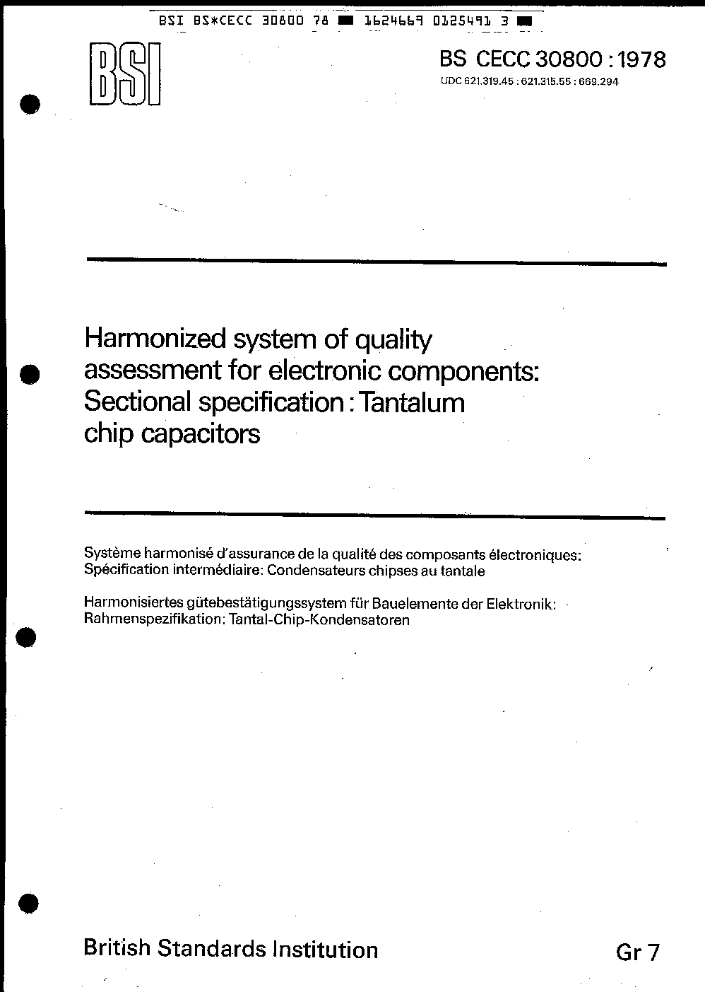 Harmonized system of quality assessment for electronic components: sectional specification: tantalum chip capacitors