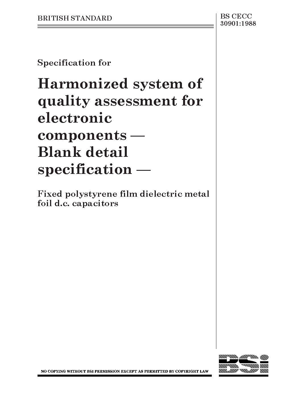 Specification for harmonized system of quality assessment for electronic components. Blank detail specification: fixed polystyrene film dielectric metal foil d.c. capacitors