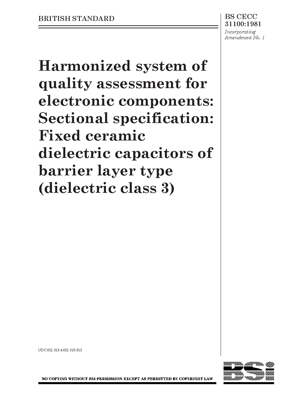 Harmonized system of quality assessment for electronic components: sectional specification: fixed ceramic dielectric capacitors of barrier layer type (dielectric class 3)
