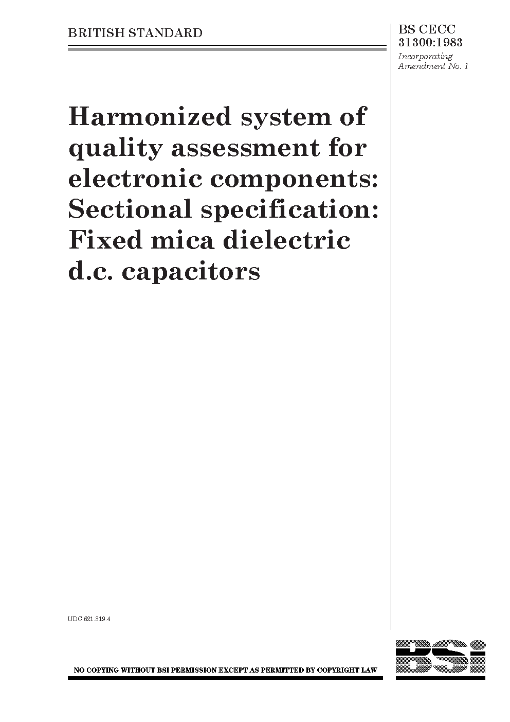 Harmonized system of quality assessment for electronic components: sectional specification: fixed mica dielectric d.c. capacitors