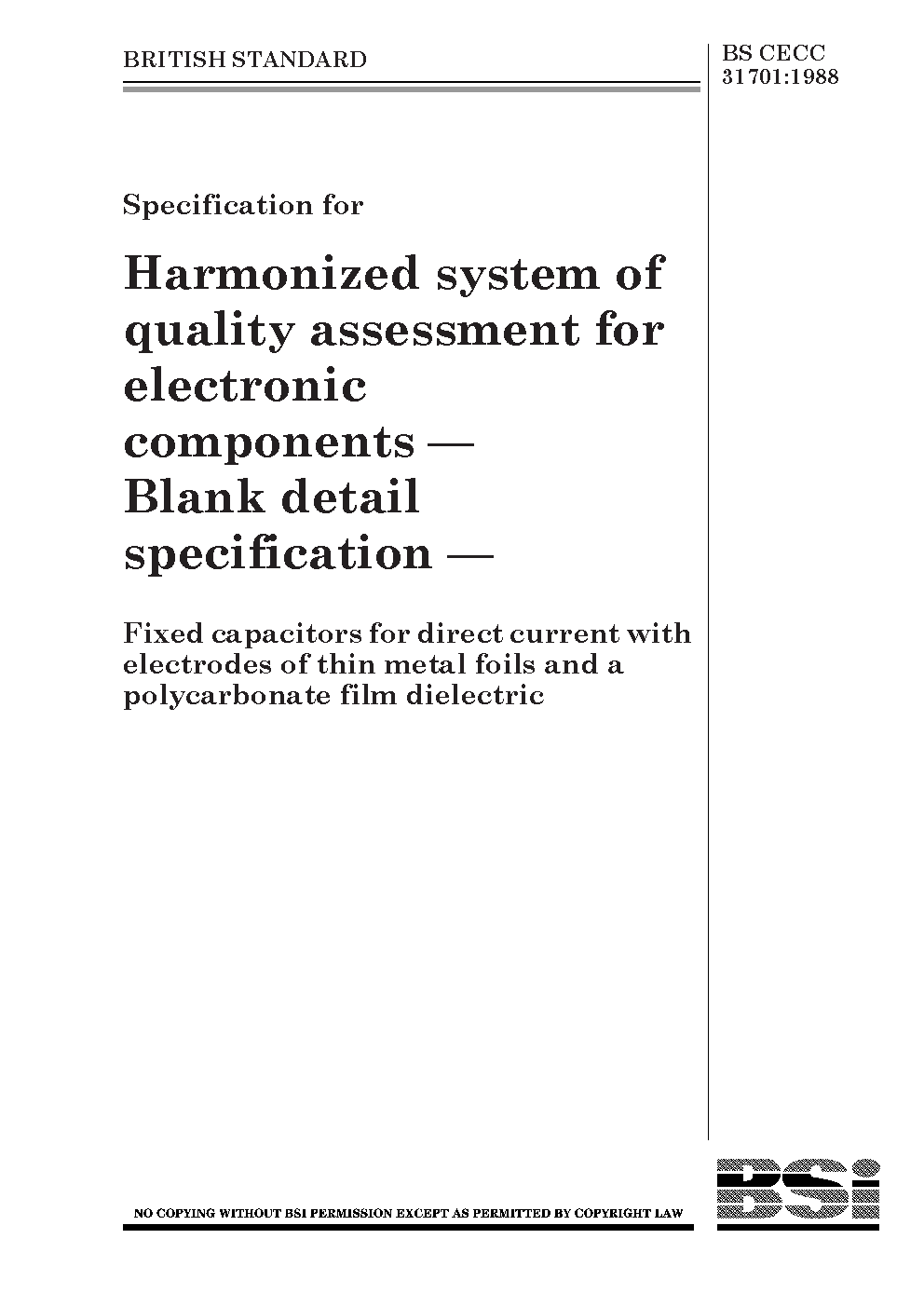 Specification for harmonized system of quality assessment for electronic components. Blank detail specification: fixed capacitors for direct current with electrodes of thin metal foils and a polycarbonate film dielectric