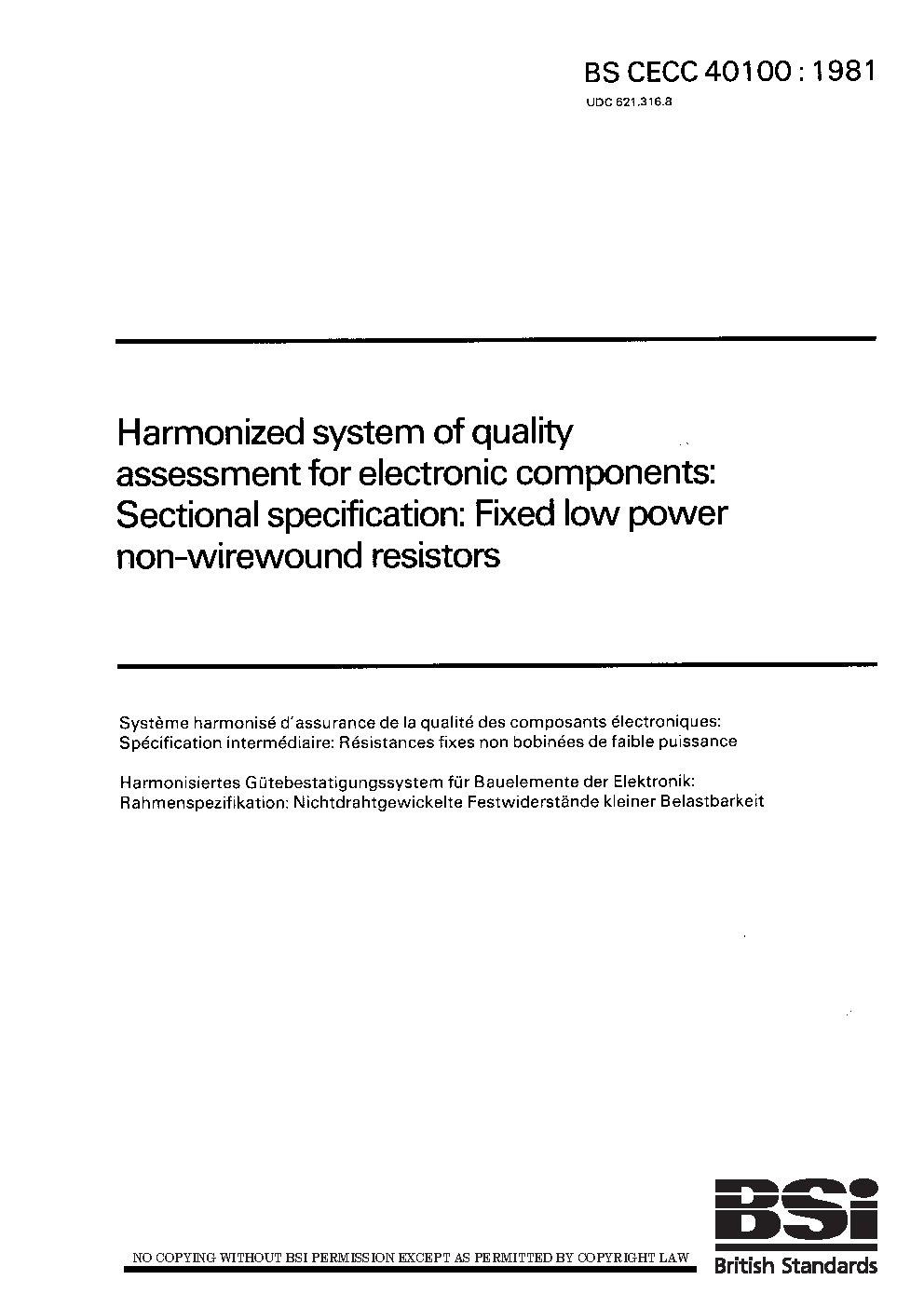 Harmonized system of quality assessment for electronic components: sectional specification: fixed low power non-wirewound resistors
