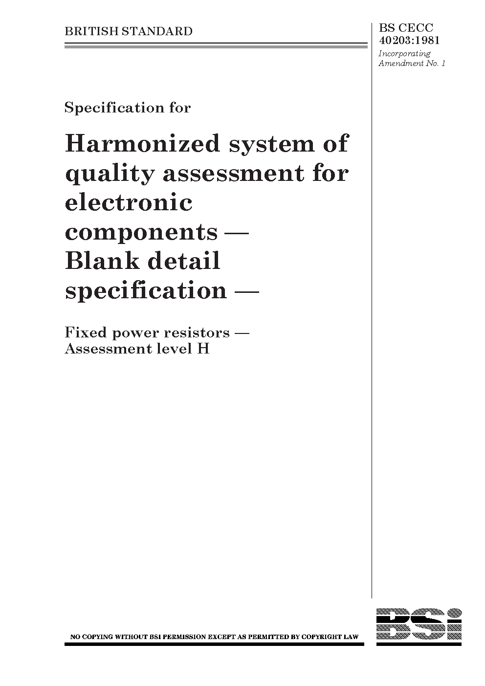 Specification for harmonized system of quality assessment for electronic components. Blank detail specification: fixed power resistors. Assessment level H