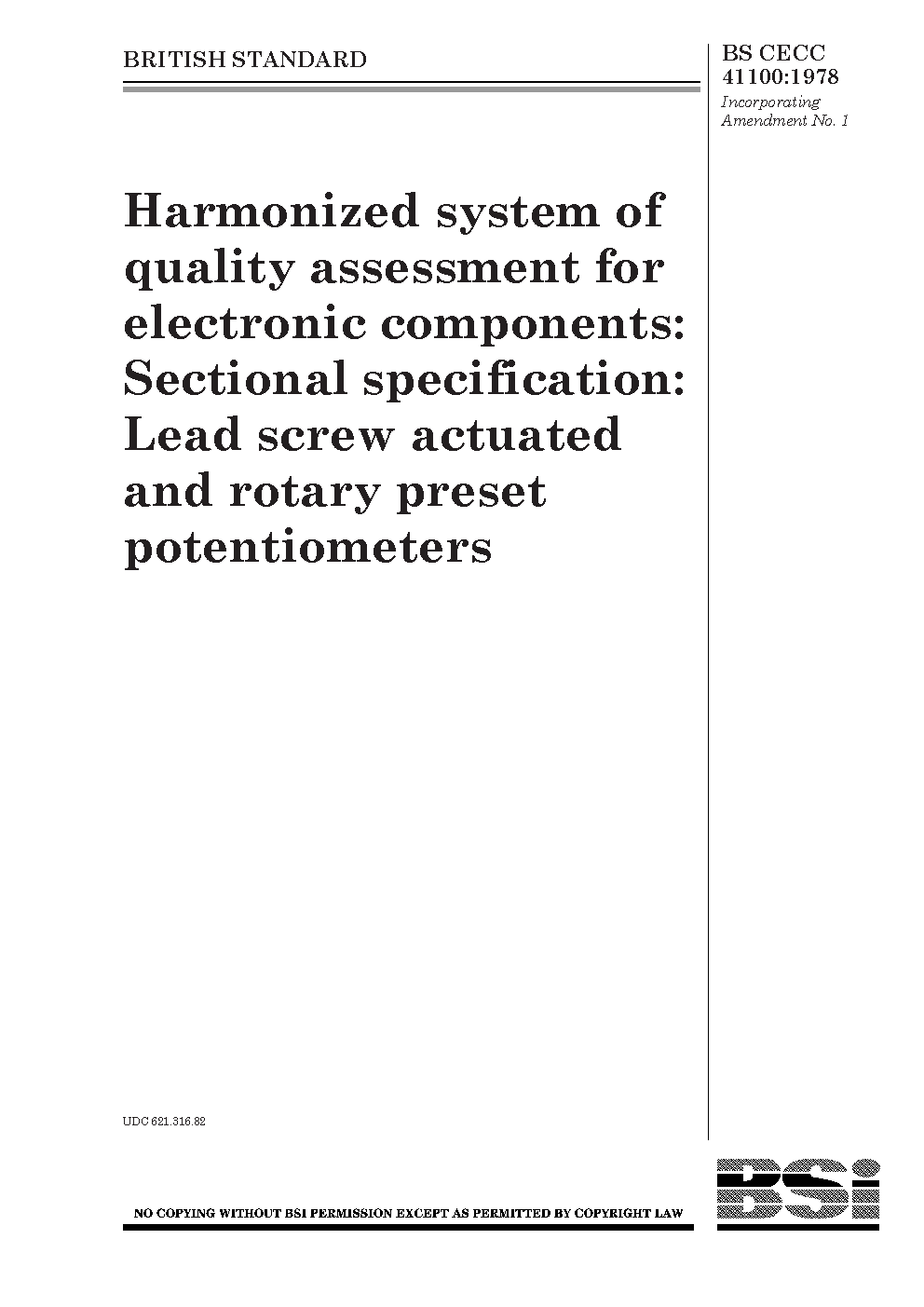 Harmonized system of quality assessment for electronic components: sectional specification: lead screw actuated and rotary preset potentiometers