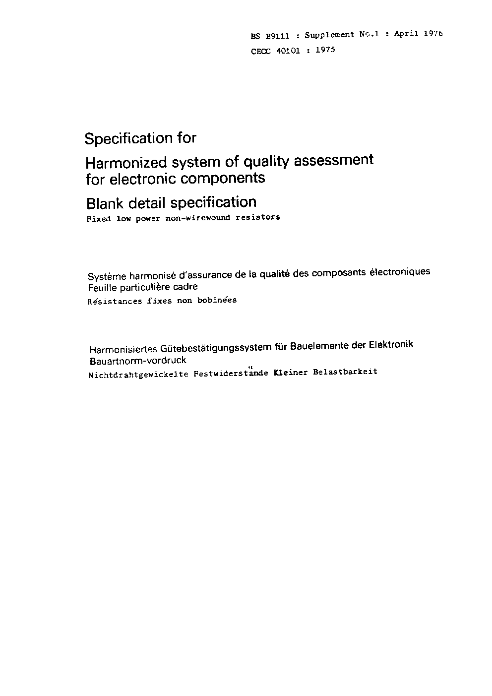 Harmonized system of quality assessment for electronic components. Sectional specification for fixed low power non-wirewound resistors