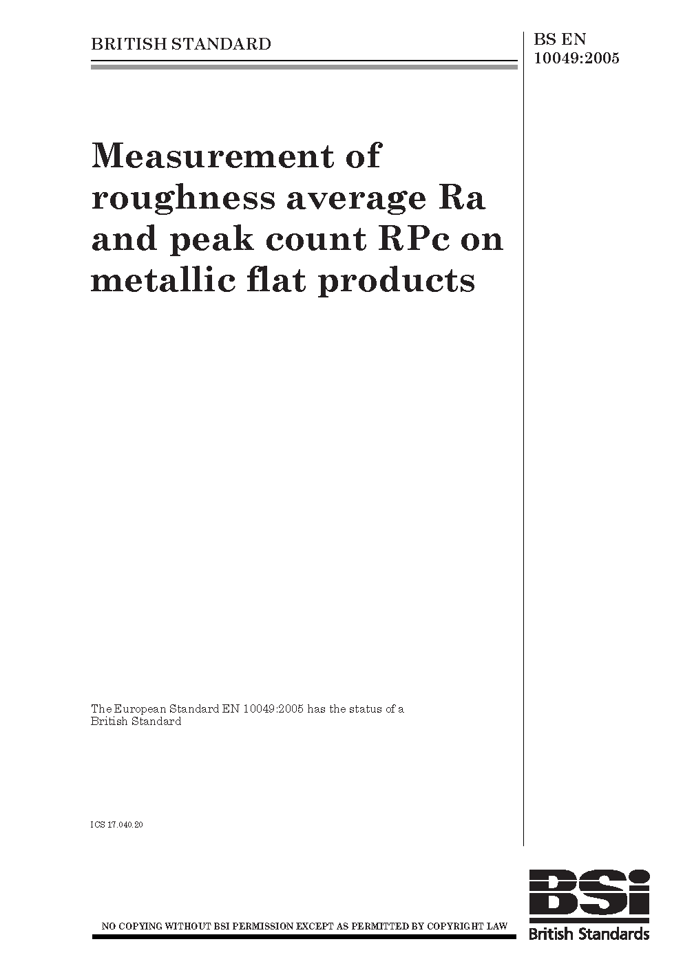 Measurement of roughness average. Ra and peak count RPc on metallic flat products