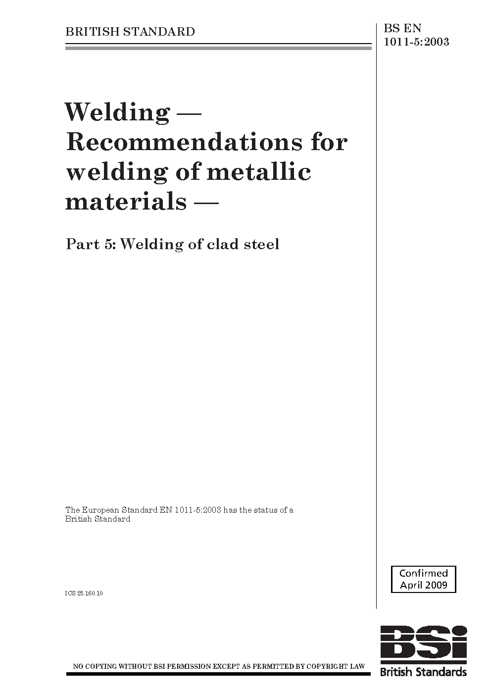 Welding. Recommendations for welding of metallic materials Welding clad steel