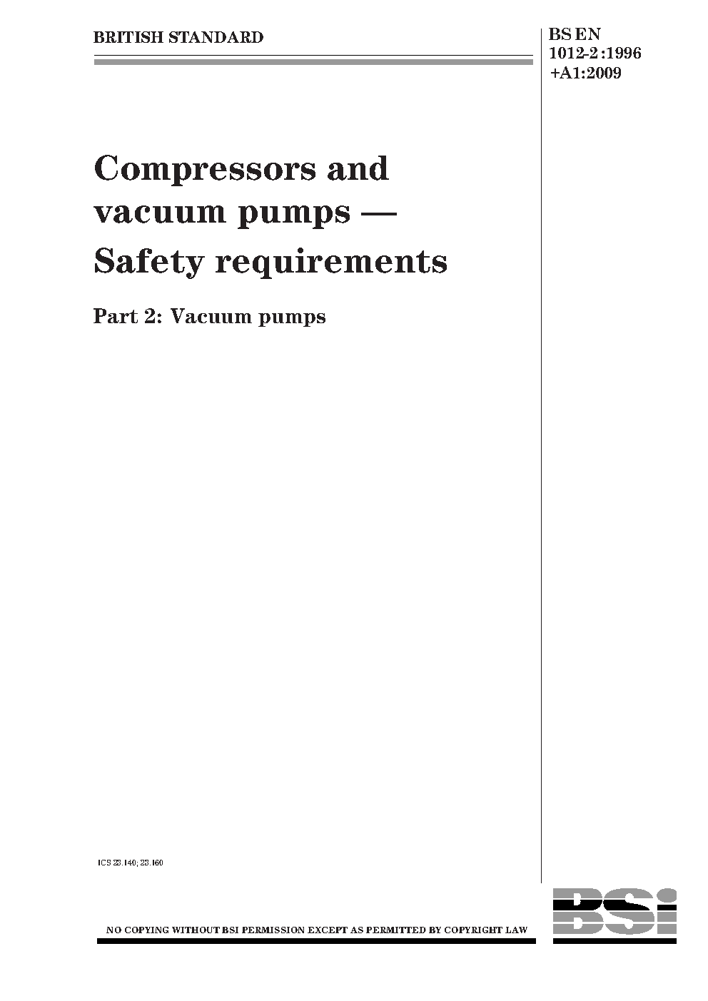 Compressors and vacuum pumps. Safety requirements Vacuum pumps