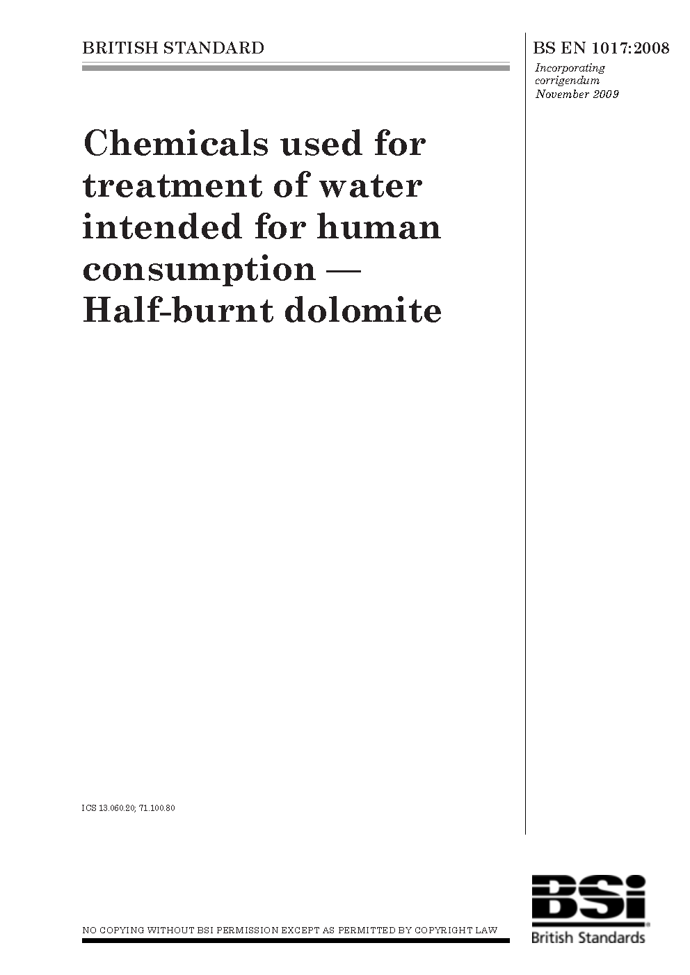 Chemicals used for treatment of water intended for human consumption. Half-burnt dolomite