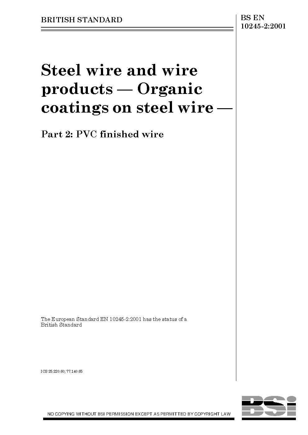 Polyvinyl chloride;Performance testing;Steels;Classification systems;Non-metallic coatings;Wires;Organic coatings;Plastic coatings;Vinyl resins;Polymers