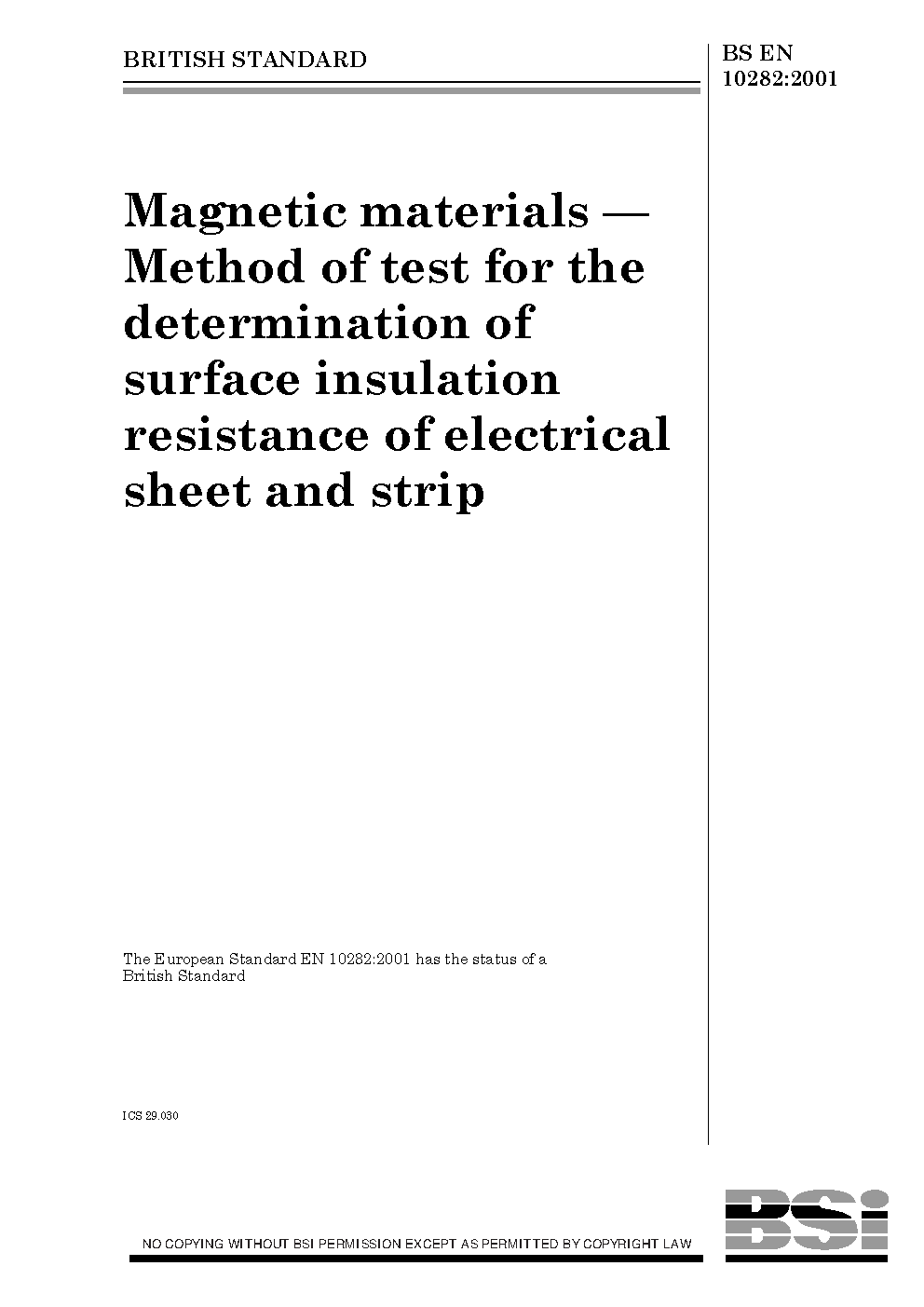 Magnetic materials. Method of test for the determination of surface insulation resistance of electrical sheet and strip