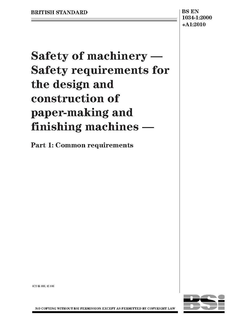 Safety of machinery. requirements for the design and construction paper-making finishing machines Common