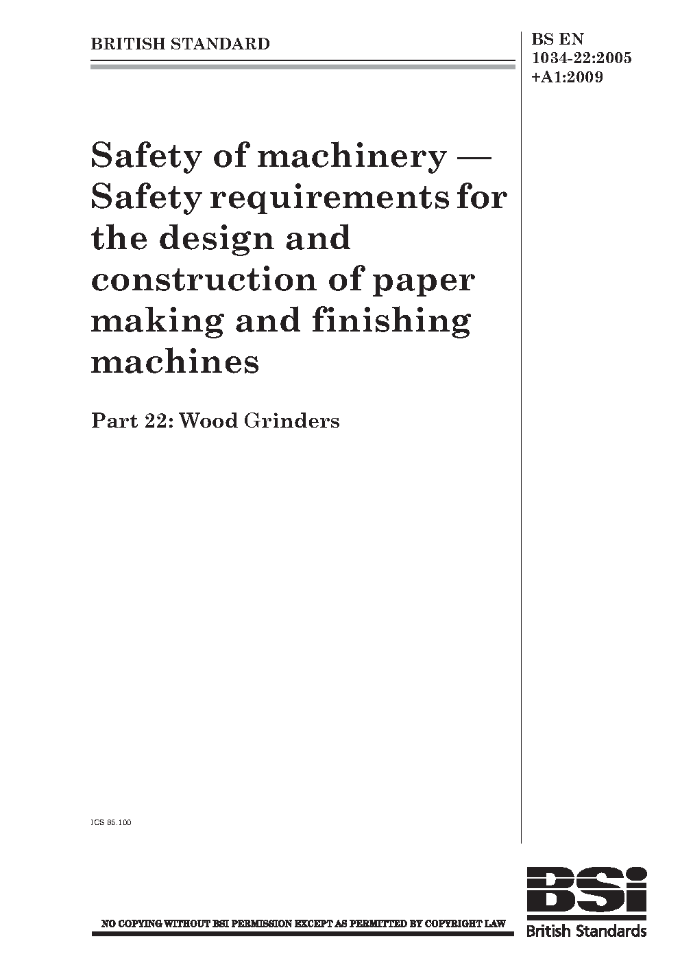 Safety of machinery. requirements for the design and construction paper making finishing machines Wood grinders