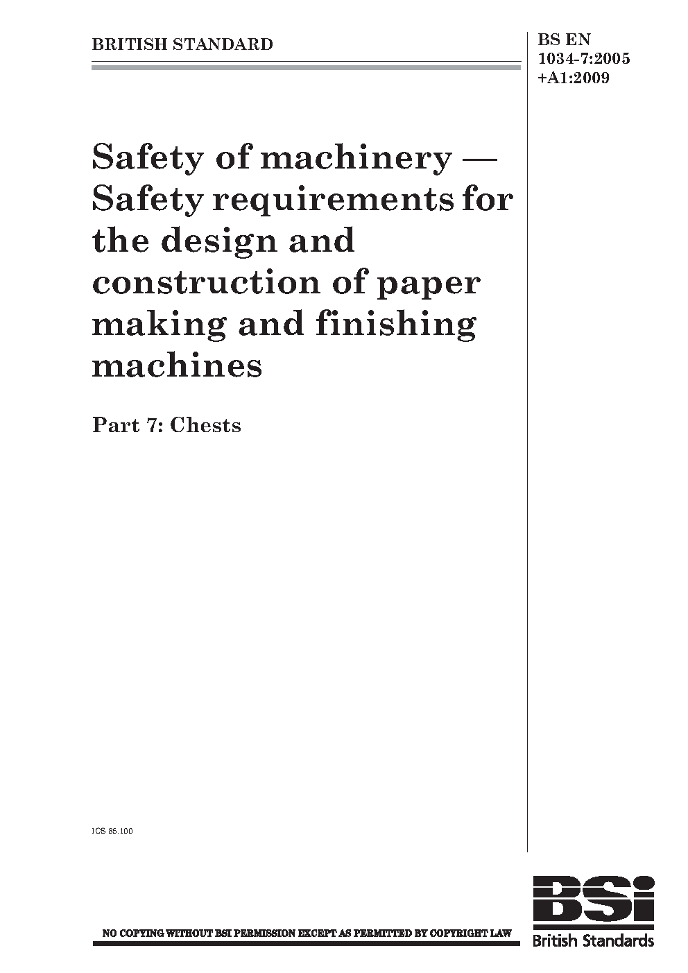 Safety of machinery. requirements for the design and construction paper making finishing machines Chests