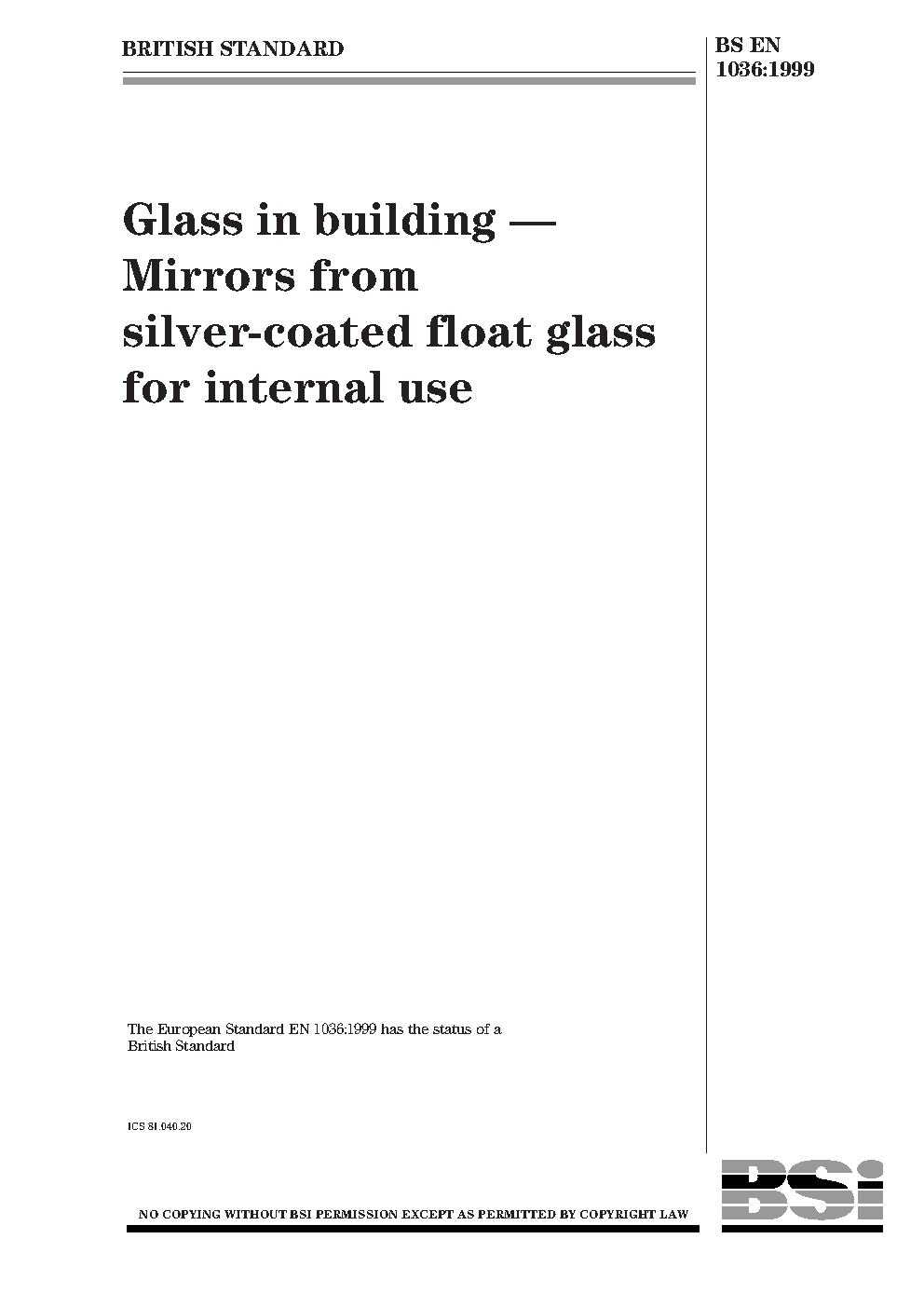 Glass in building. Mirrors from silver-coated float glass for internal use