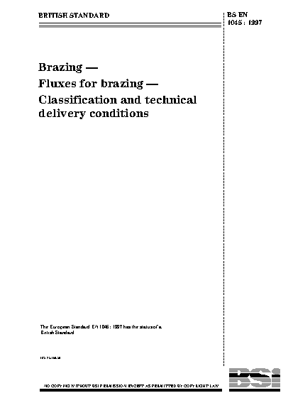 Brazing. Fluxes for brazing. Classification and technical delivery conditions