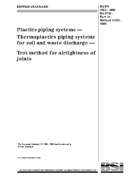 Plastics piping systems. Thermoplastics piping systems for soil and waste discharge. Test method for airtightness of joints