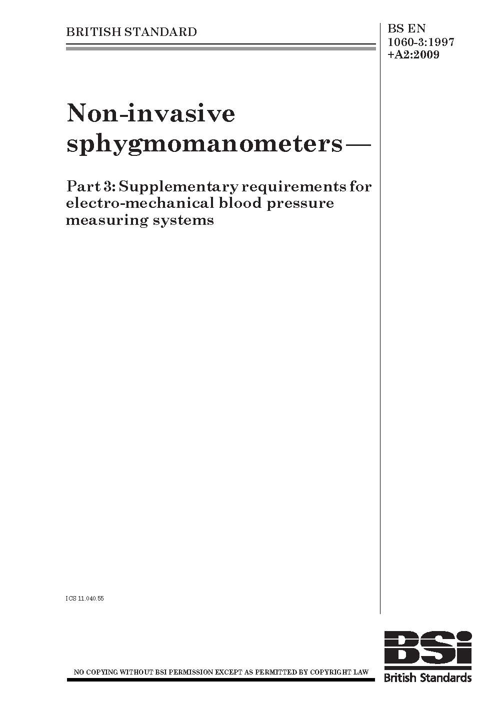 Non-invasive sphygmomanometers Supplementary requirements for electro-mechanical blood pressure measuring systems