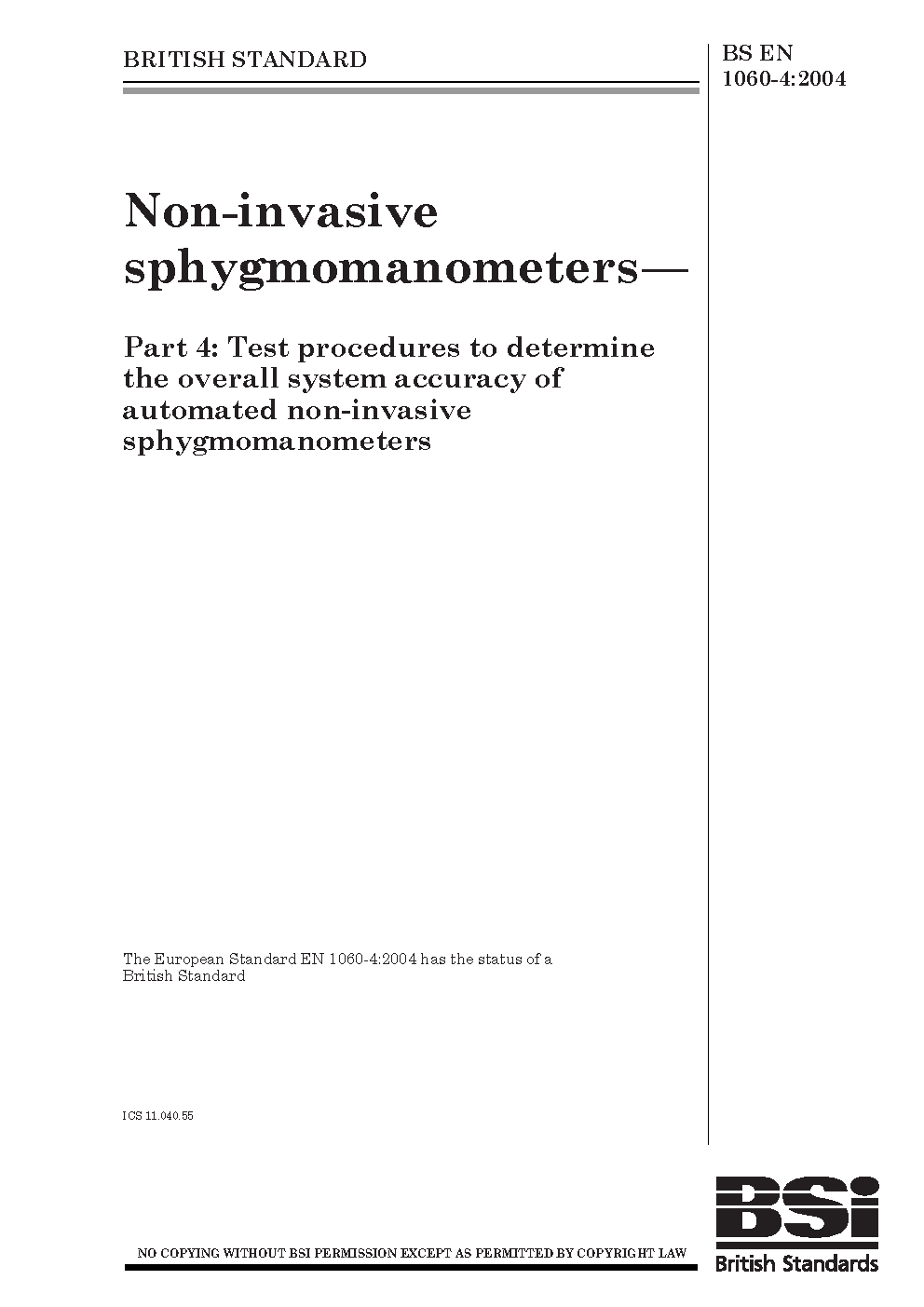 Non-invasive sphygmomanometers Test procedures to determine the overall system accuracy of automated non-invasive