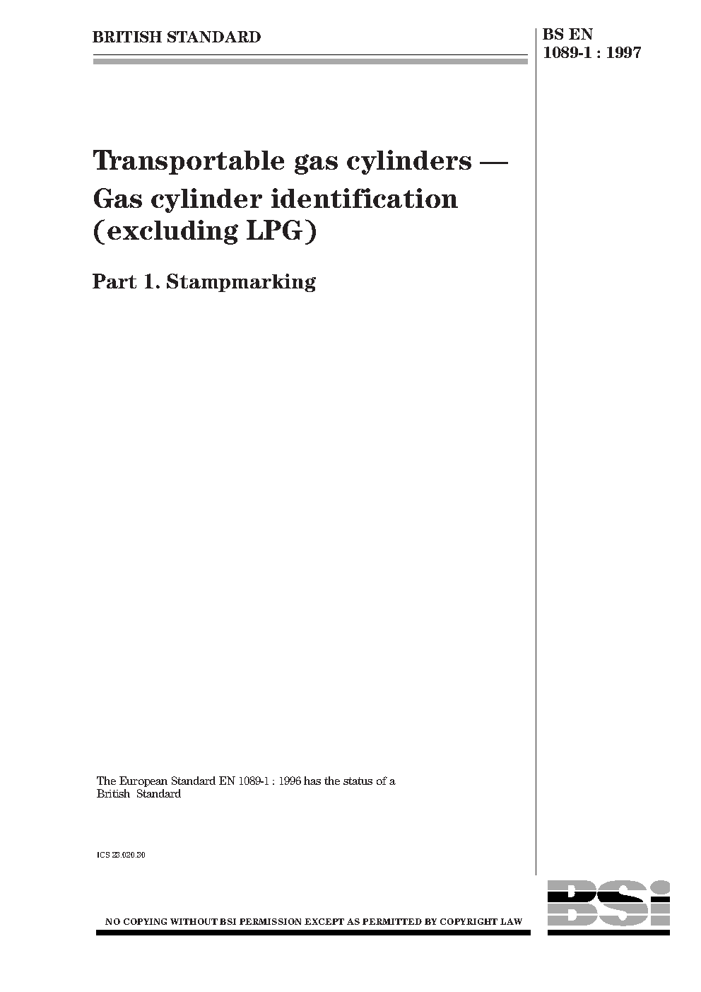 Transportable gas cylinders. Gas cylinder identification (excluding LPG) Stampmarking