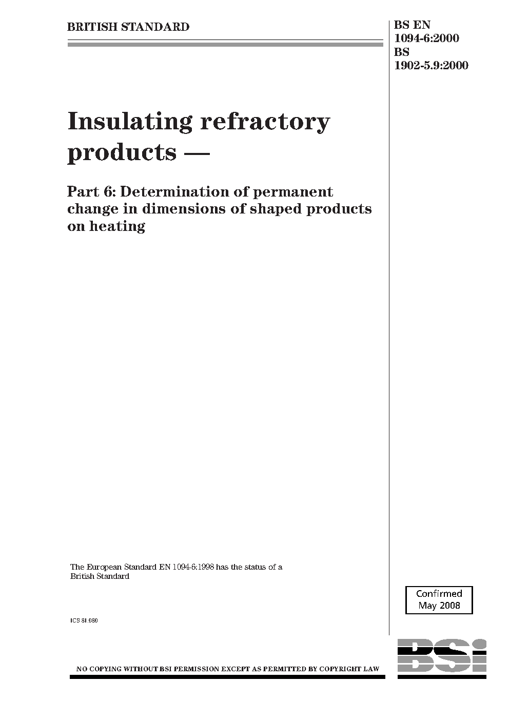 Dimensional changes;Thermal testing;Thermal insulating materials;Refractories;Refractory materials;Heating;Shaped refractories
