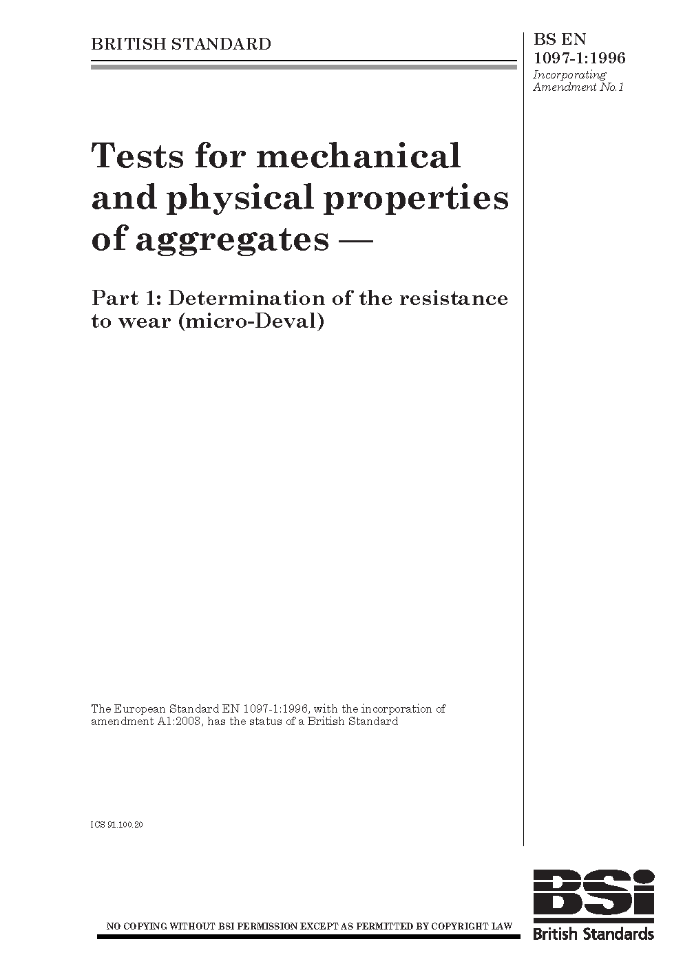 Tests for mechanical and physical properties of aggregates Determination the resistance to wear (micro-Deval)