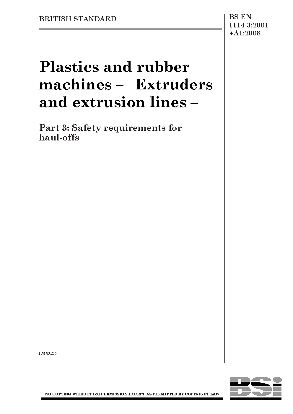 Plastics and rubber machines. Extruders extrusion lines Safety requirements for haul-offs