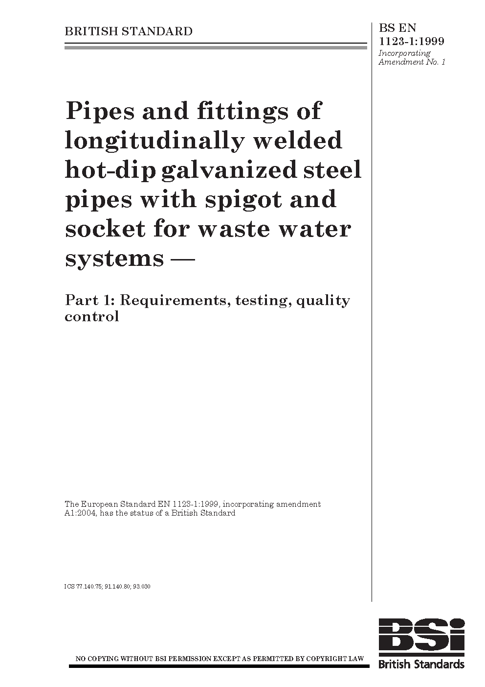 BS EN 1123-1:1999
