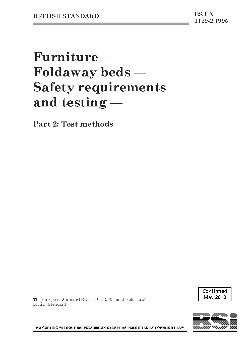 Furniture. Foldaway beds. Safety requirements and testing Test methods