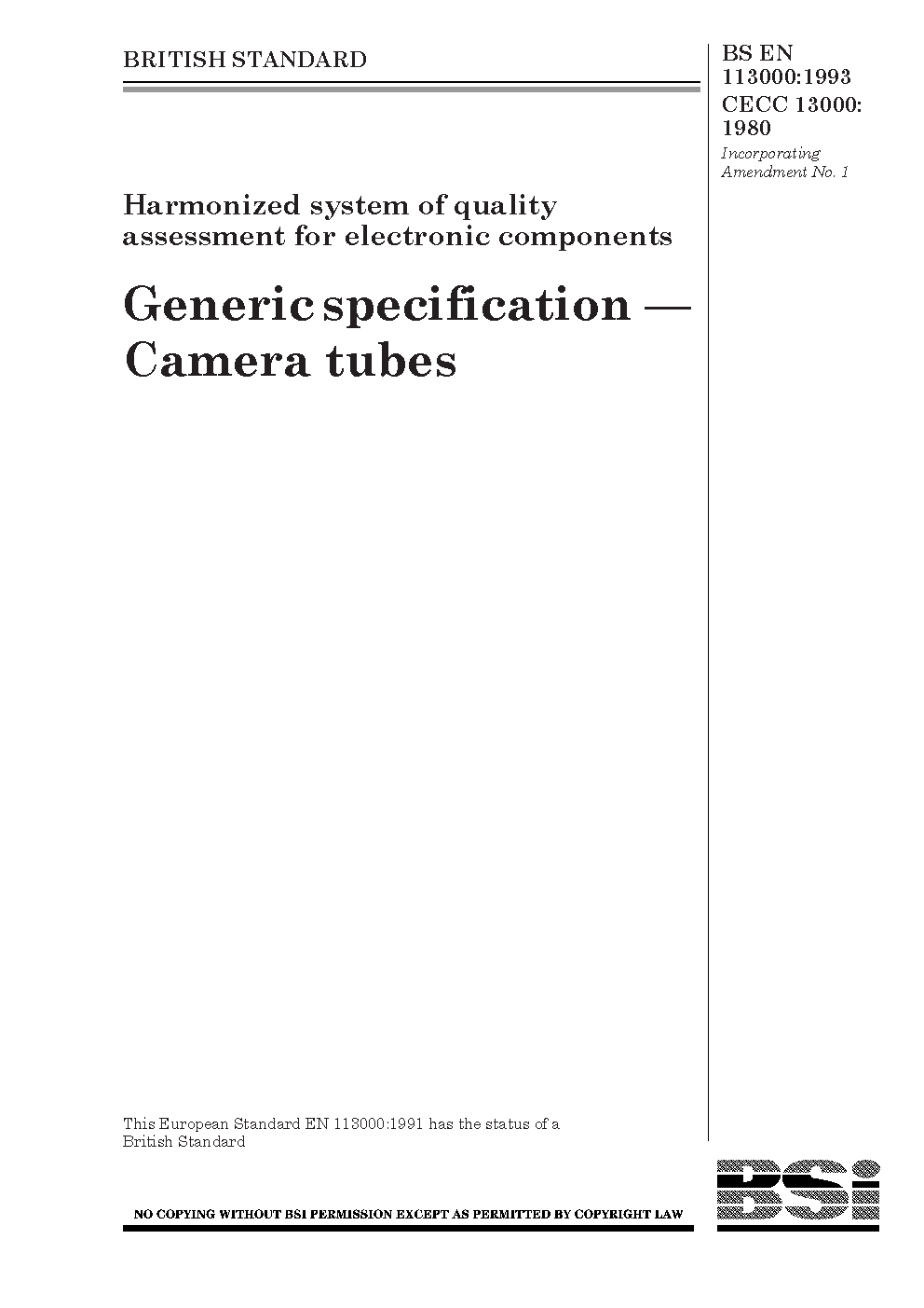 Harmonized system of quality assessment for electronic components. Generic specification: camera tubes