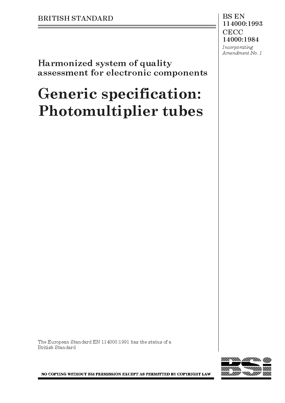 Harmonized system of quality assessment for electronic components: generic specification: photomultiplier tubes