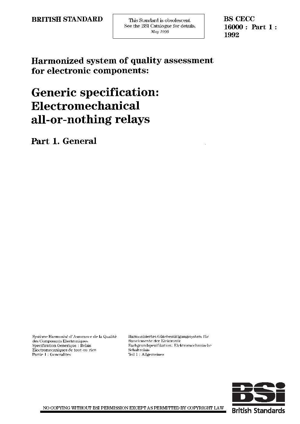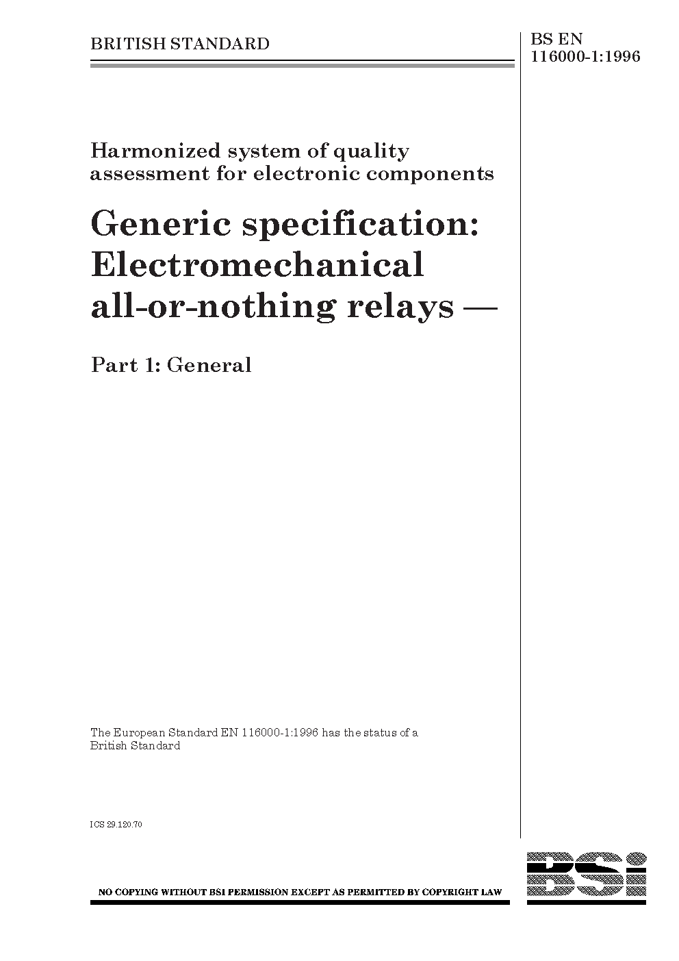 Harmonized system of quality assessment for electronic components. Generic specification: electromechanical all-or-nothing relays General