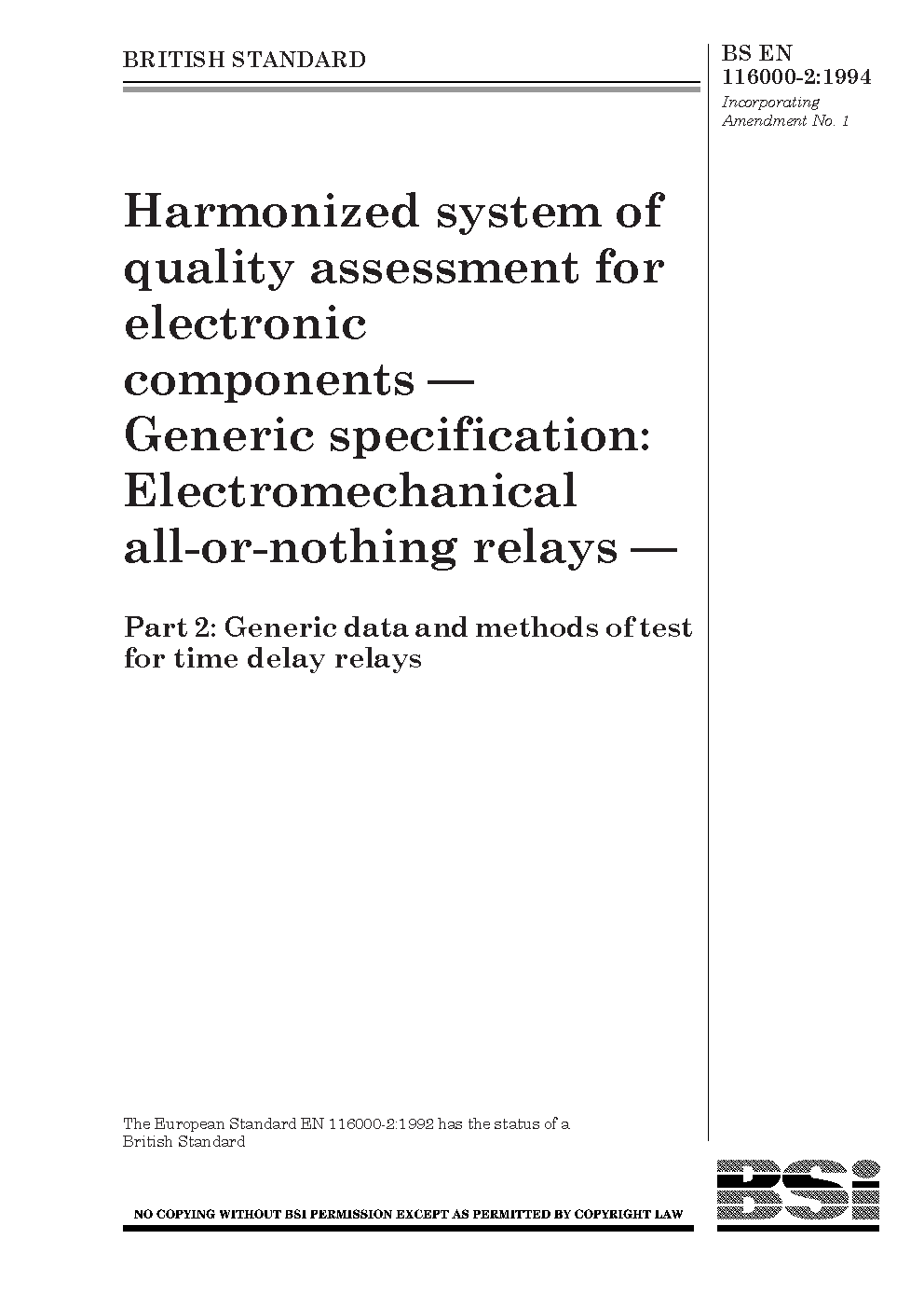 Harmonized system of quality assessment for electronic components. Generic specification: electromechanical all-or-nothing relays data and methods test time delay