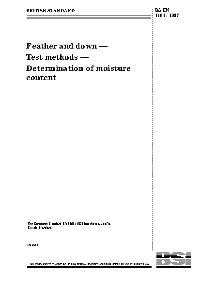 Feather and down. Test methods. Determination of moisture content