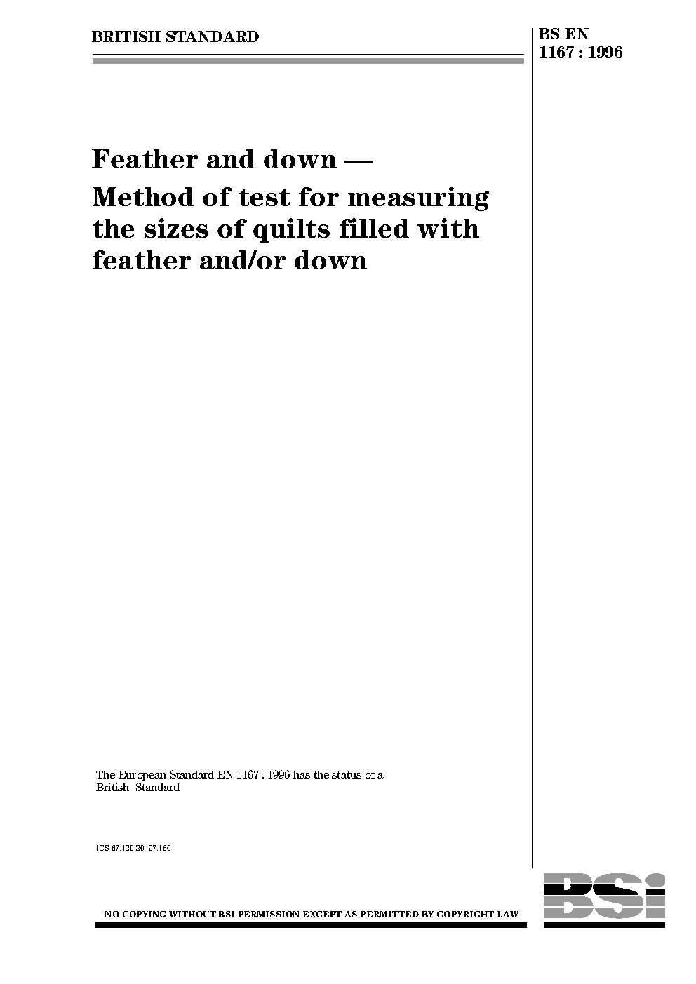 Feather and down. Method of test for measuring the sizes of quilts filled with feather and/or down