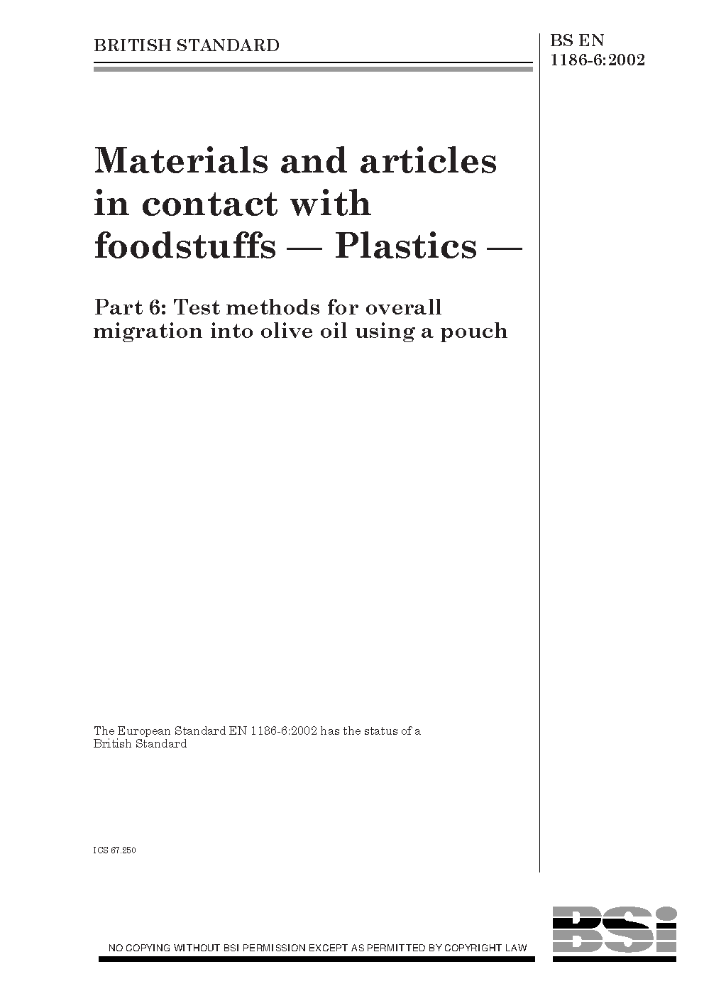 Materials and articles in contact with foodstuffs. Plastics Test methods for overall migration vegetable oils