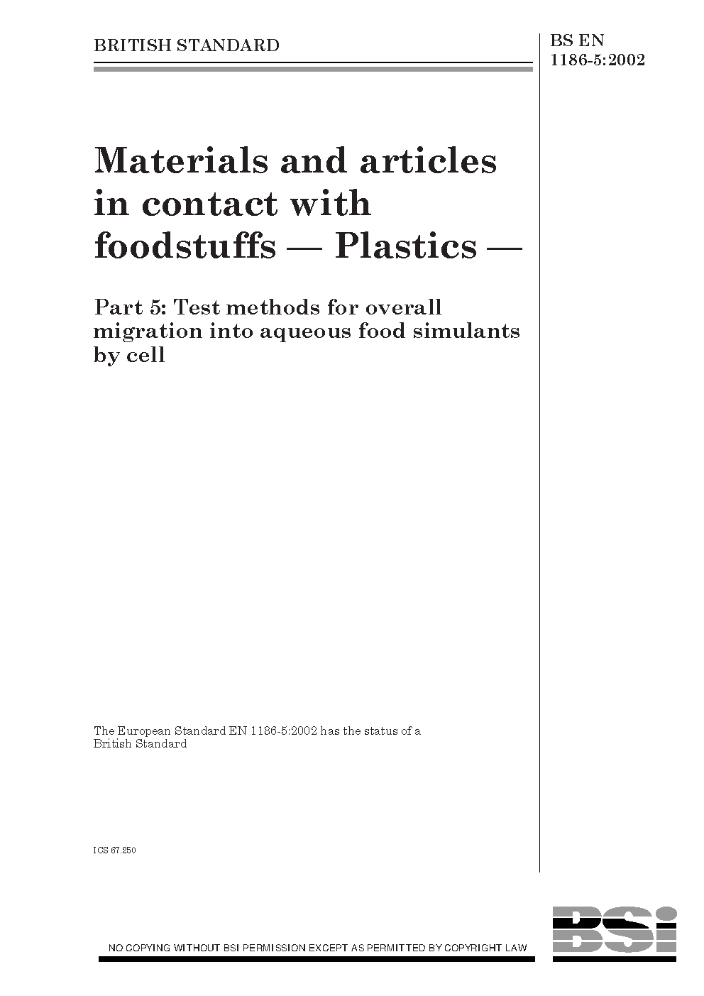 Materials and articles in contact with foodstuffs. Plastics Test methods for overall migration into aqueous food simulants by cell