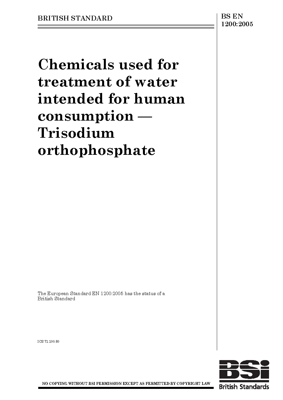 Corrosion inhibitors;Phosphates;Sodium inorganic compounds;Chemical composition;Water purification;Water treatment;Physical properties of materials;Orthophosphates;Purity;Chemical analysis and testing;Potable water;Chemical properties;Impurities