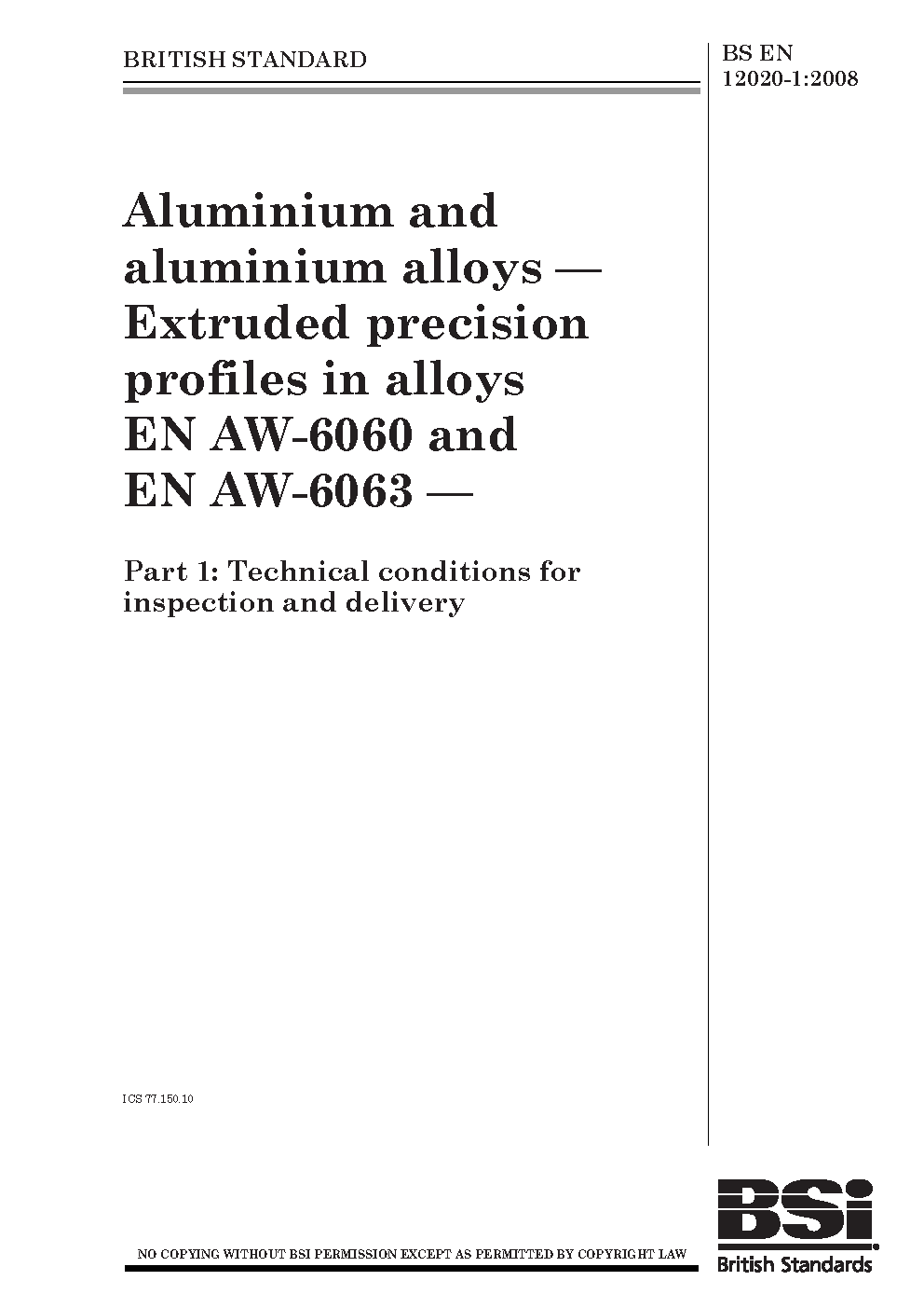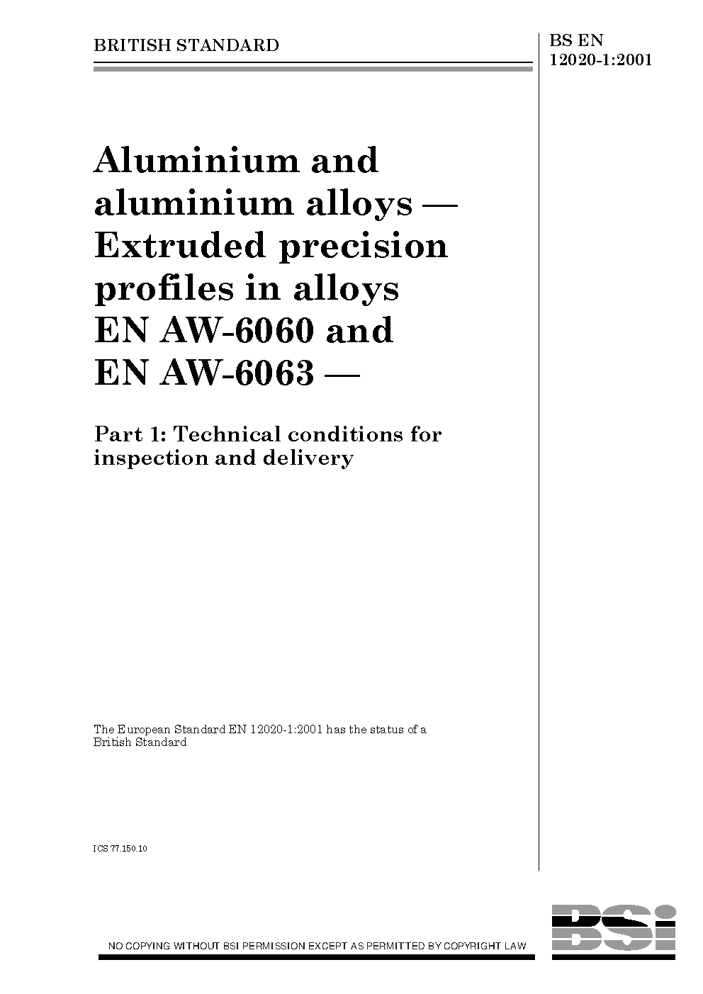 Aluminium and aluminium alloys. Extruded precision profiles in alloys EN AW-6060 AW-6063 Technical conditions for inspection delivery