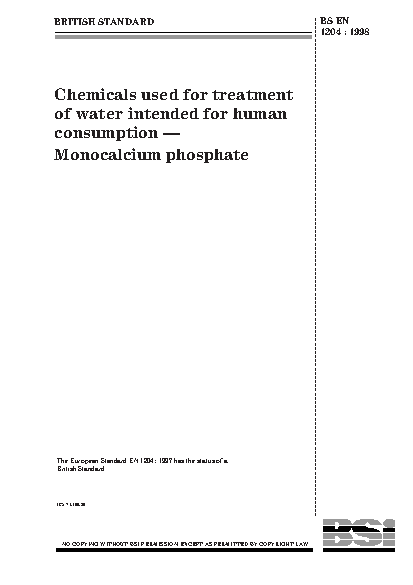 Chemical composition;Chemical properties;Purity;Impurities;Potable water;Water purification;Chemical analysis and testing;Water treatment;Physical properties of materials;Phosphates;Orthophosphates;Calcium inorganic compounds