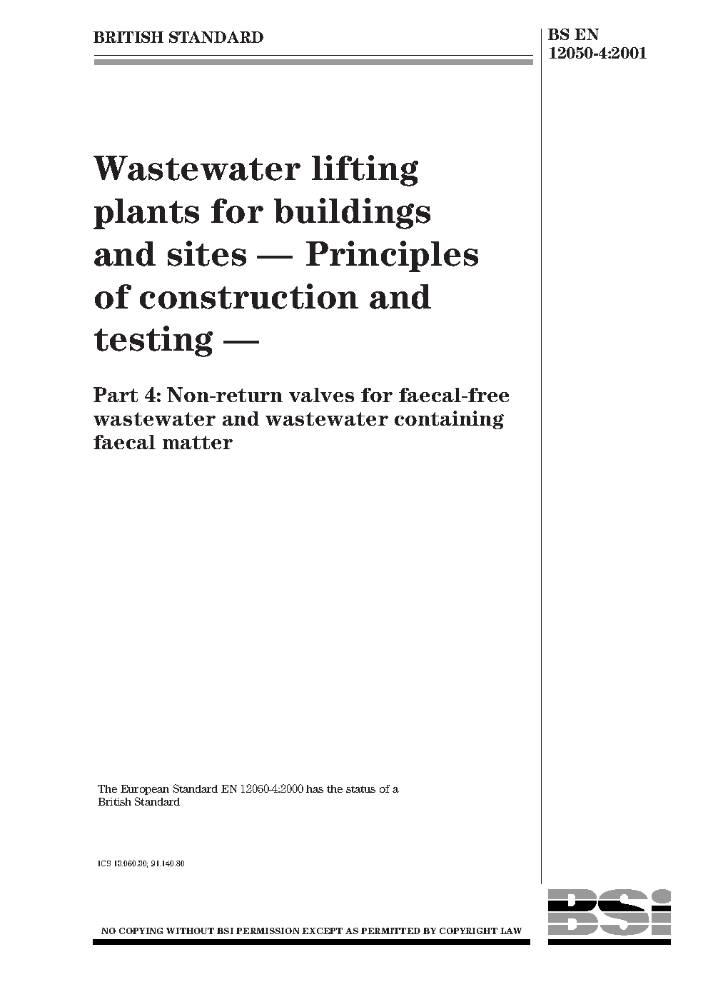 Wastewater lifting plants for buildings and sites Non-return valves faecal-free wastewater containing faecal matter