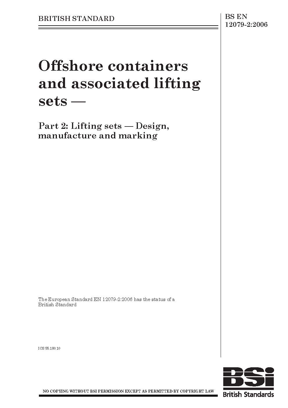 Offshore containers and associated lifting sets Lifting sets. Design, manufacture marking