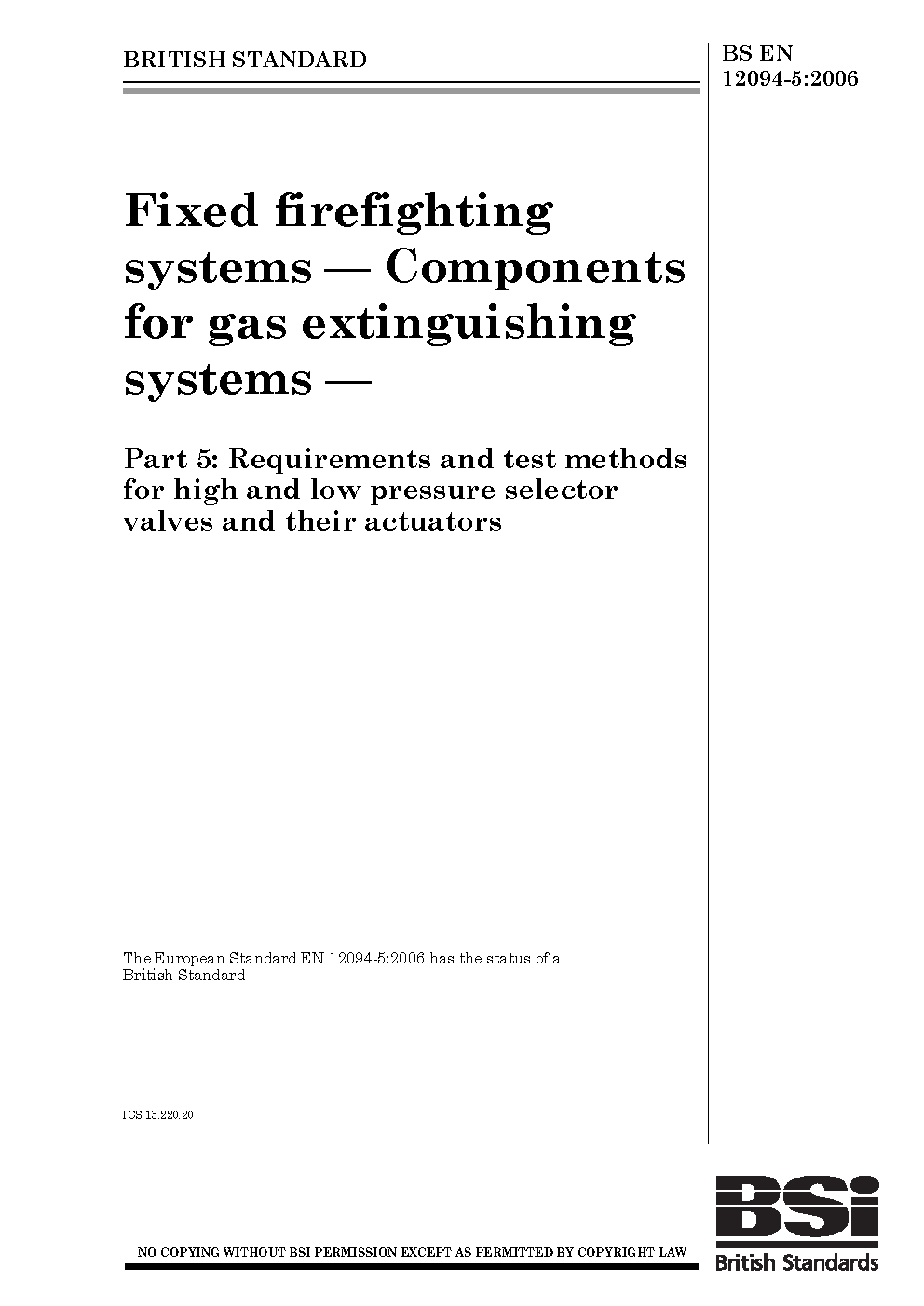 Fixed firefighting systems. Components for gas extinguishing systems Requirements and test methods high low pressure selector valves their actuators