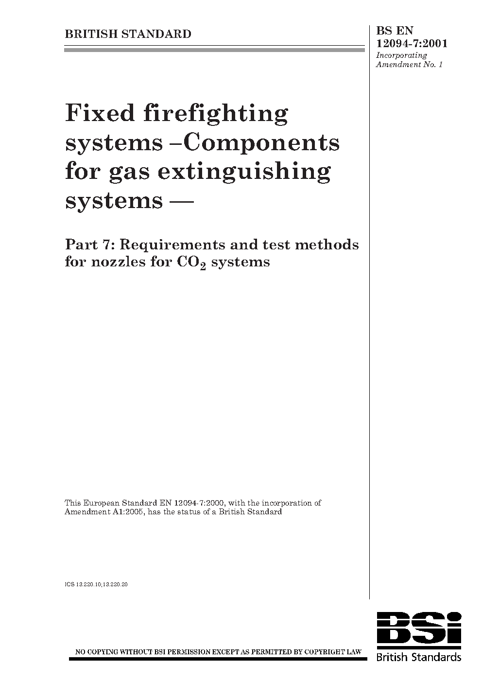 Fixed firefighting systems. Components for gas extinguishing systems Requirements and test methods nozzles CO2