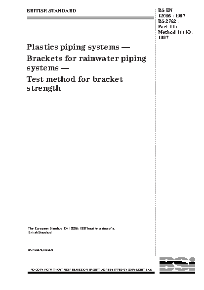 Plastics piping systems. Brackets for rainwater piping systems. Test method for bracket strength