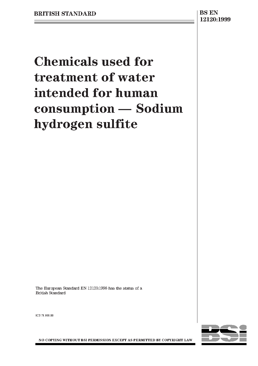 Chemicals used for treatment of water intended for human consumption. Sodium hydrogen sulfite