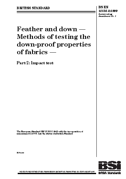 Cloth;Test specimens;Impact testing;Feathers;Ticking;Testing conditions;Specimen preparation;Woven fabrics;Penetration tests;Fabric testing;Test equipment