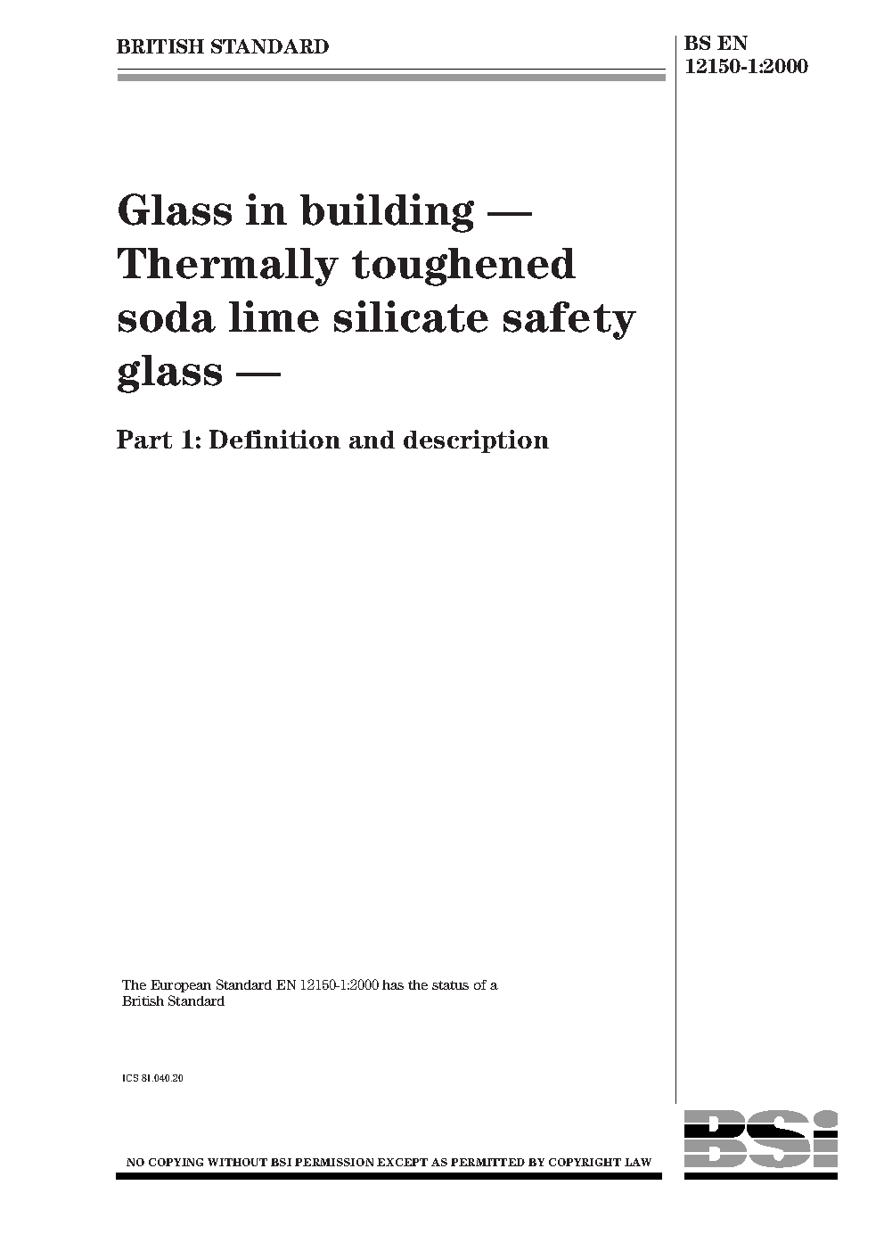 Glass in building. Thermally toughened soda lime silicate safety glass Definition and description