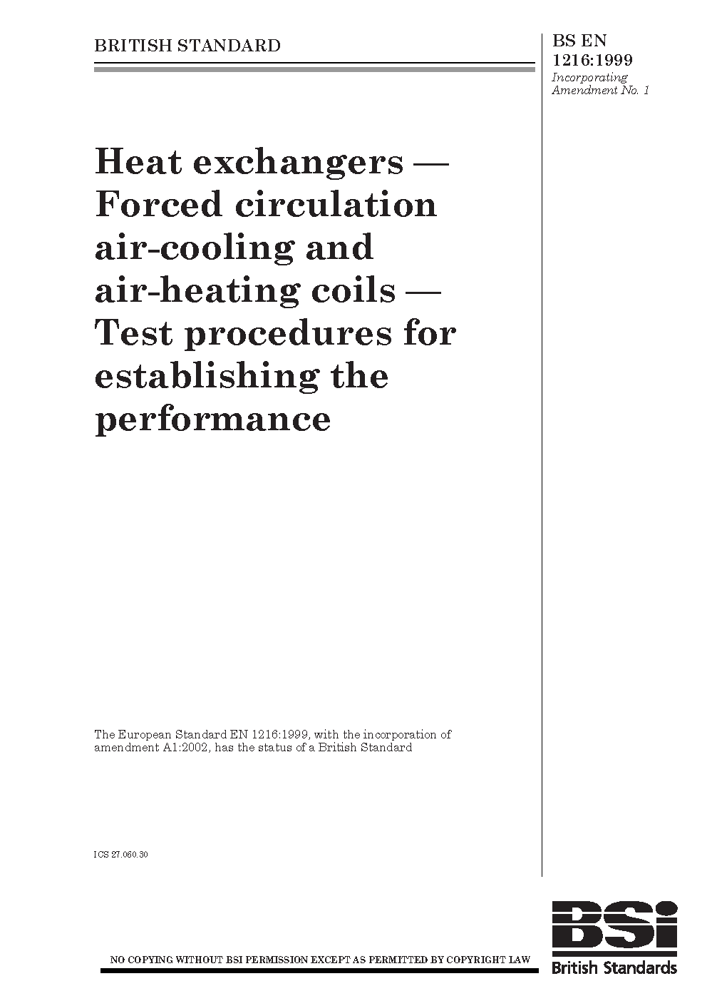 Heat exchangers. Forced circulation air-cooling and air-heating coils. Test procedures for establishing the performance
